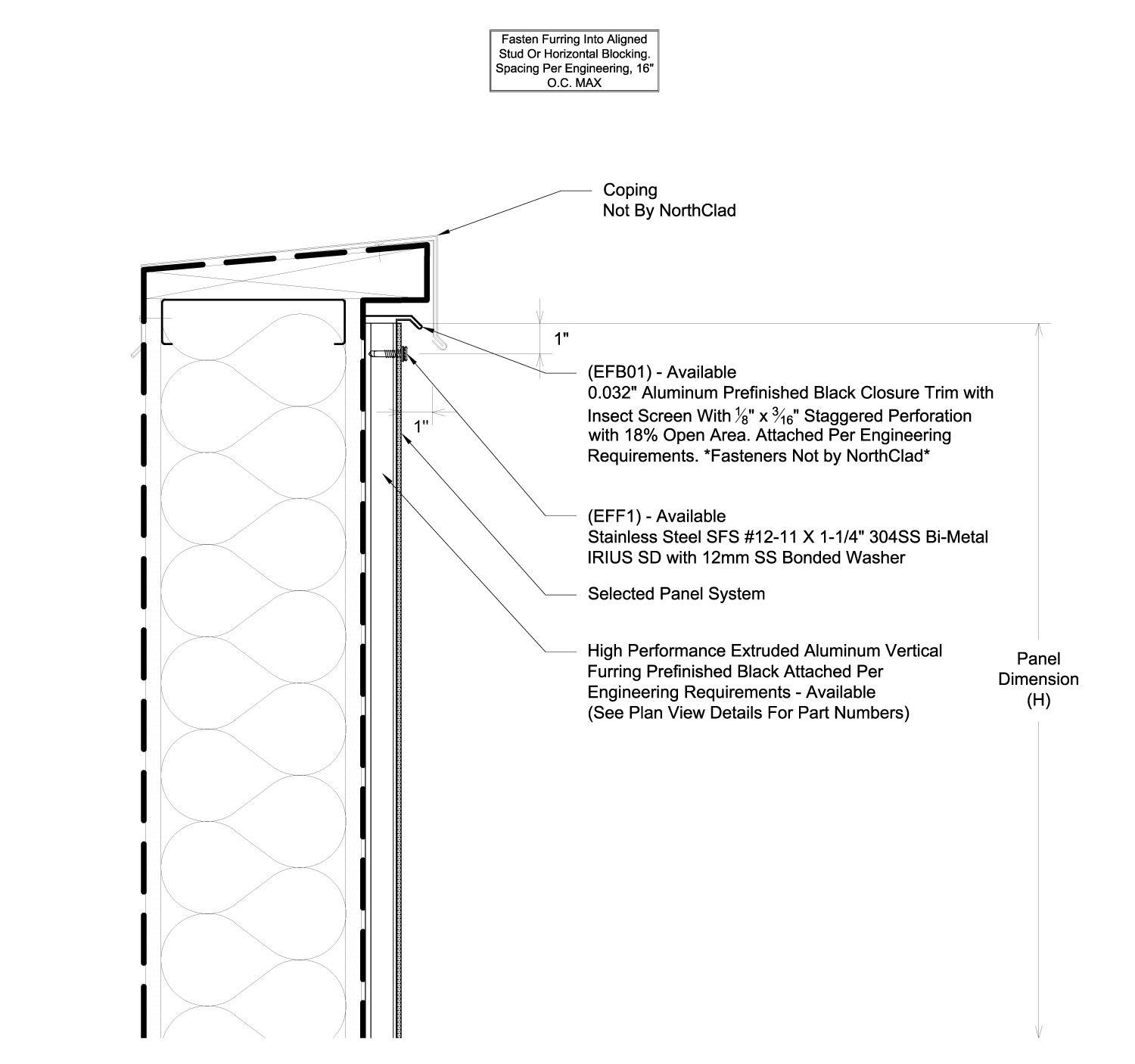 EXPOSED FASTENER DETAILS INBOARD INSULATION Exposed Fastener Series Product Brochure Product Details No Insulation With Insulation Specification Guide ASTM Testing Data ASTM Organic Panels 4mm ACM Panels .125 Aluminum Panels Installation Guide LEED® Credit Parts Catalog Concealed Fastener Series Product Brochure Product Details No Insulation With Insulation Specification Guide Colors & Materials Color Options Stonewood™ Colors Material Options Fastener Series Gallery Exposed Fastener Series Product Brochure Product Details No Insulation With Insulation Specification Guide ASTM Testing Data ASTM Organic Panels 4mm ACM Panels .125 Aluminum Panels Installation Guide LEED® Credit Parts Catalog Concealed Fastener Series Product Brochure Product Details No Insulation With Insulation Specification Guide Colors & Materials Color Options Stonewood™ Colors Material Options Fastener Series Gallery N H H K T J1 R1 L S1 J2 R2 C A D B G J3 E S2 R3 M Click on the blue dots on the map to scroll down to the descriptions below to get a close up of each area shown on the map. Or, download the entire package details right here: FULL PACKAGE DETAILS - PDF A - Horizontal Joint VIEW PDF B - Vertical Joint VIEW PDF C - Vertical Fastener VIEW PDF D - Base of Wall VIEW PDF E - Coping VIEW PDF F - Soffit Fascia by Others VIEW PDF G - Outside Corner VIEW PDF H - Inside Corner VIEW PDF J1 - Framed Opening Door Header VIEW PDF J2 - Framed Opening Window Header VIEW PDF J3 - Framed Opening Louver Header VIEW PDF K - Fascia to Soffit VIEW PDF L - Wall to Soffit w/Vent VIEW PDF M - Inside Corner Termination VIEW PDF N - Termination to Adjacent Materials VIEW PDF P - Soffit to Wall by Others VIEW PDF Q - Fascia to Soffit by Others VIEW PDF R1 - Framed Opening Jamb VIEW PDF R2 - Framed Opening Window Jamb VIEW PDF R3 - Framed Opening Louver Jamb VIEW PDF S1 - Framed Opening Window Sill VIEW PDF S2 - Framed Opening Louver Sill VIEW PDF T - Inside Corner to Jamb VIEW PDF U - Soffit to Window Header VIEW PDF V - Wall to Soffit by Others VIEW PDF W - Outside Corner to System by Others VIEW PDF